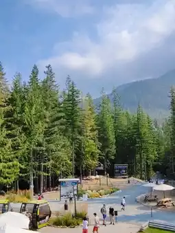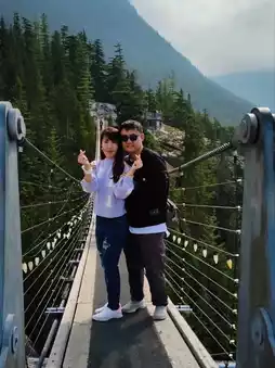 🏆 Whistler, also known as "Little Switzerland," offers breathtaking natural beauty without the need to travel to Switzerland. Whistler Resort has earned this nickname for its stunning landscapes. Take the Sea to Sky Gondola, where "adventure by nature" awaits. The gondola ride lasts over 10 minutes, taking you to an elevation of 885 meters. From there, you can enjoy panoramic mountain views and immerse yourself in the grandeur of nature. The scenery along the way is picturesque, and the experience begins the moment you step onto the gondola. There's also a suspension bridge perfect for photos. In September, you can sit on a wooden bench atop the mountain, enjoying a Subway lunch while basking in the sunlight and marveling at the natural wonders around you. 🏞️🌲 This serene moment is truly a rare treasure. ☺️