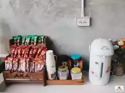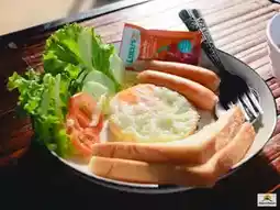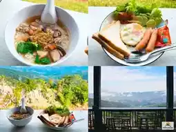 🍱 It is a room with breakfast with a million-dollar view. The food is served as a set, rice porridge and bread, sausage, fried eggs, with a coffee corner. The vegetables here are fresh, organic vegetables that the accommodation grows itself.