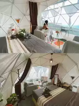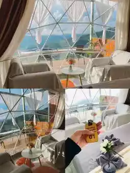 A chic dome-style accommodation nestled amidst the mountains, offering a romantic atmosphere and stunning mountain views from your room. 🏞️ The accommodation features a comfortable bed, a chill-out corner for sipping coffee, cute decorations, and breakfast is included. 🍳✨