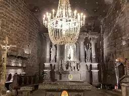 *** Underground Chapel This church is made from real salt dug from the mine and is beautifully decorated with intricate salt carvings, as well as statues and paintings made from salt, giving the church a strange and impressive atmosphere.
