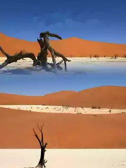 • Deadvlei: A surreal landscape of ancient dead trees against white salt pans.
