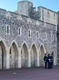 The first thing I noticed upon passing through the archway was the Round Tower, a landmark building built by Henry II. The flag atop it holds a secret: when the Royal Standard is flying, it signifies that King Charles III is within the castle. A Union Jack, however, signifies the royal family's temporary absence. Ascending along the cobblestone path, I was greeted by panoramic views of the red rooftops of Windsor and the greenery of the Thames Valley, the medieval fortress's defensive structure instantly becoming clear.