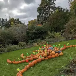 The old, historic walls, gates, and wooden plaques with plant descriptions add the charm of a classic, academic place to the garden. This architectural solemnity, combined with the natural autumn layout, gives the whole a sense of eternal continuity and historical depth. The garden not only showcases plants but also tells the story of its long existence, which during the Halloween season builds an atmosphere of respect for the past.