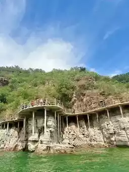 Lake Jingniang is renowned for the touching legend of Zhao Kuangyin and a young maiden. The lake's expansive surface mirrors the surrounding mountains, creating a breathtaking scene. At dawn, a thin mist drifts across the water, evoking a dreamlike atmosphere. As you glide across the lake by boat, gentle ripples and layered distant mountains unfold like a traditional ink painting. Among the peculiar rocks and cliffs along the shore, whispers of the ancient tale linger, adding a touch of tenderness and mystery to the serene waters. At dusk, the setting sun bathes the lake in golden-red hues, reminiscent of the timeless love story that continues to shimmer in the depths of history.