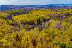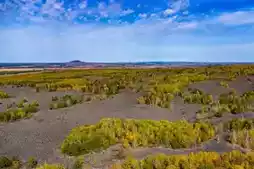 As autumn gently caresses Heihe City in Heilongjiang Province, the Wudalianchi Scenic Area paints a picture where volcanoes and autumn colors dance together. The old Heishan volcanic crater resembles a giant bowl filled with vibrant autumn light. From the summit, the volcanic cluster winds like a red dragon through the golden sea of forests. The clear waters of Wenbo Lake mirror the golden birch and fiery red maple leaves, embracing them all. In the Longmen Shizhai megalithic formation, volcanic rock and larch trees blend strength and softness, playing a symphony of geology and autumn charm.