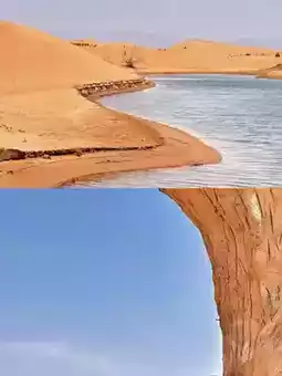 📸Must-do: In the morning, go to Wuhai Lake Pier No. 1 and take a speedboat (CNY 98) into the "Venice of the Desert". With crystal-clear waters on one side and rolling sand dunes on the other, put on a red dress, stand on top of a dune, and take stunning photos. Bring a drone for even more amazing aerial shots!