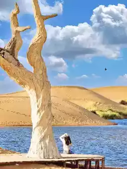 🌊 3. Wuhai Lake – The highlight of the trip! Half desert, half sea, it’s truly surreal. You’ll need to take a boat to get inside the scenic area. Don’t miss the famous tree and the stunning desert roads—both perfect for Instagram-worthy shots! 📷✨