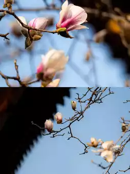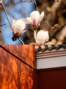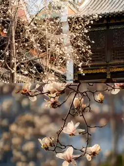 The pure white magnolias are as pure as snowflakes, while the pink ones are as delicate as the clouds on the horizon. As the gentle breeze blows, petals flutter down, transforming the stone path into a romantic flower path, as if you've stumbled into a fairyland.