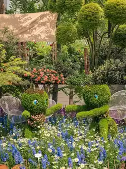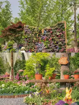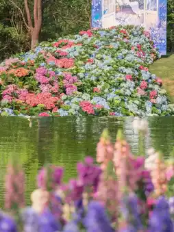 The exhibition's overall style leans towards a "Monet Garden" aesthetic, featuring a wide variety of vibrant and beautiful flowers.