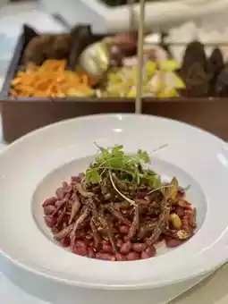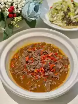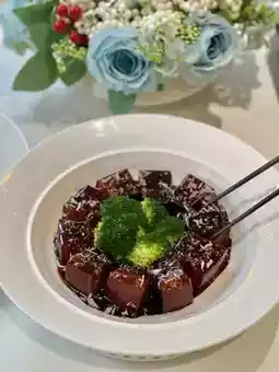 The signature sweet-scented osmanthus braised pork, with its layers of fat and lean meat, carries the aroma of osmanthus flowers.