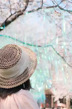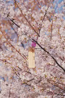 The spring breeze blows, and the ribbons and cherry blossom petals dance in the wind.