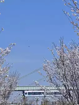 The skytrain arrives every few minutes, and from the windows, you can watch a cloud-like sea of white cherry blossoms.