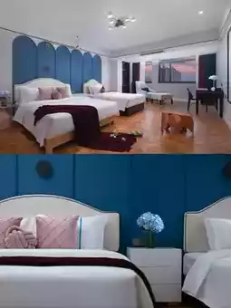 • Comfortable rooms: The room style is simple and stylish, and the bedding is soft and comfortable. Lying down is like being wrapped in clouds ☁️ There is also an intelligent control system, which can easily control the lights, curtains, and air conditioning, full of technology!