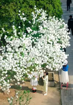 The most popular snowball viburnum viewing spot in Wuhan is Shahu Park 📍