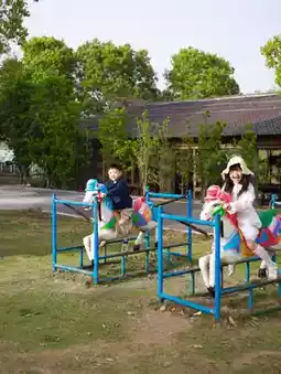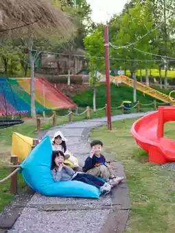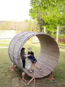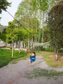 The non-powered park has swings, climbing frames, zip lines, and go-karts, where you can play until you sweat.
