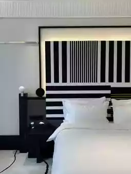 The room is very spacious, and I love the decoration style. It has a very simple and high-end feel.