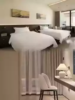 The homestay's architecture is based on the concept of "integration of mountains and rivers," cleverly combining modern minimalist lines with Hubei architectural elements. The staggered blocks of gray tiles and white walls seem to grow naturally from Ganlu Mountain, and the extra-large floor-to-ceiling glass windows bring the seasonal mountain scenery indoors.