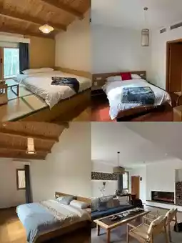 Moreover, there are detached villas ๐ก here. You can book a single room or a whole building. There are various room types. We stayed in "Looking at the Mountain", with large floor-to-ceiling windows. You can lie in bed and watch the forest. The tatami bed is soft and comfortable!