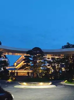 ▫️ The ancient trees in the Evergreen Cypress Garden block out the sun, and you can quietly listen to the waves on the lakeside stone steps.