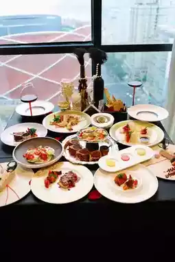 🌆 **Panoramic Views from the 23rd Floor**—The Wuhan skyline outside the floor-to-ceiling windows is dreamlike. At dusk, the sunset bathes the dining table in golden hues, and at night, the city’s neon lights shimmer in champagne glasses. Every corner whispers *"love in the air."*