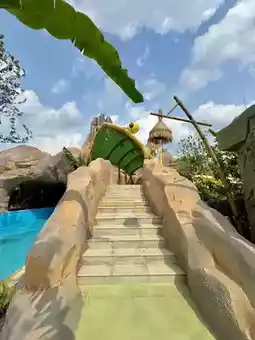 The park is absolutely stunning, featuring an outdoor water park with a wave pool 🌴 surrounded by coconut trees, long slides, and thrilling big funnels that will leave you exhilarated. It feels like you're on an overseas vacation, and every photo is Instagram-worthy 📸.
