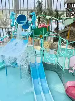 Outside, there's a massive water park and children's playground 🚀 Alien Castle, Fantasy Island, Player One... various themed zones to keep kids entertained all day long 👶 Parents can finally relax!