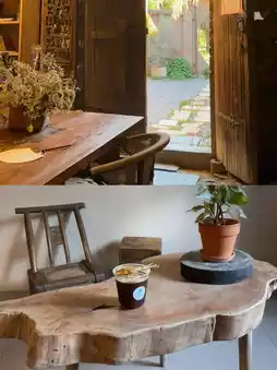 This spot is a renovated old village house—I absolutely love its raw, natural ambiance! Sitting by the floor-to-ceiling windows, lost in thought... For a moment, I felt like I was back in Jingdezhen!!