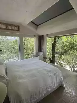 Red tile and white wall residential houses paired with a blue water tower, like being in a Studio Ghibli animation. At the end of the village is the Fuhe River embankment, perfect for cycling and exploring~