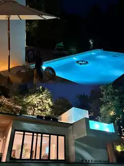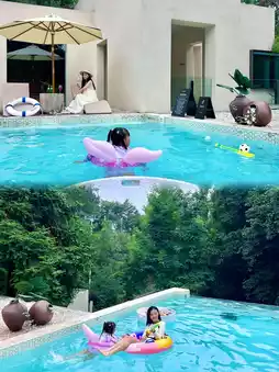 🏠 **Room Features**: There aren’t many rooms—only eight in total—with options like poolside rooms and tent rooms. I highly recommend booking a poolside room for better amenities and easy access to swimming! I stayed in the "Mountain View" room, which was so close to nature! A full wall of floor-to-ceiling windows lets you gaze at the mountains as soon as you open the curtains. At night, you can lie in bed and stargaze through the skylight—utterly romantic! The bathtub is huge, big enough for kids to swim in, and the balcony offers a stunning view of Mulan Mountain, perfect for sunset-watching while listening to the wind and cicadas. Pure bliss!