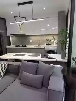 High-rise apartment with floor-to-ceiling windows, one-bedroom, one-living-room smart layout.