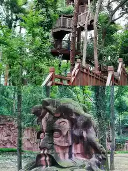 • Forest micro-adventure hike: Enter through the Chu City Gate and follow the “Forest Micro-Adventure” route. You’ll encounter a giant statue of Yu Xiong (legendary ancestor of Chu), a stele engraved with “Li Sao,” and a suspended treehouse walkway, like stepping into a fairy tale forest.