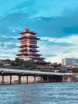 In the morning, I stood at the foot of the Yuewang Tower. This renowned Tang Dynasty tower, on par with the Yellow Crane Tower, the Pavilion of Prince Teng, and the Yueyang Tower, exudes a majestic grandeur. From the tower, I gazed out over the surging Fu River and the panoramic city views.