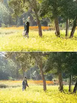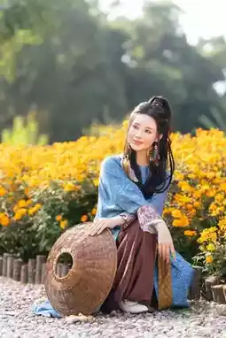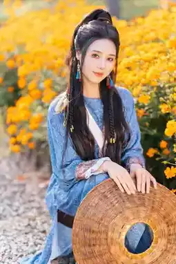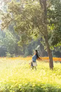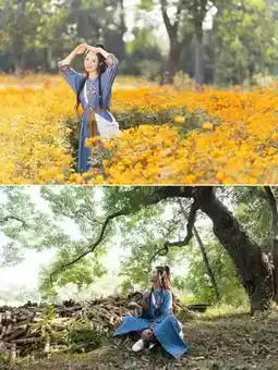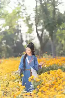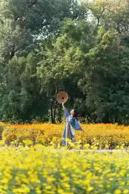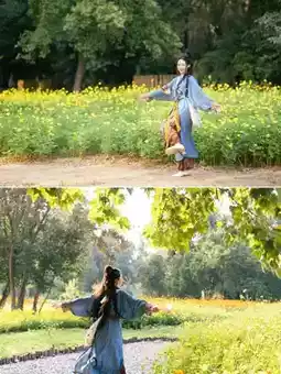 ✅ Light-colored Hanfu perfectly matches the golden sea of flowers