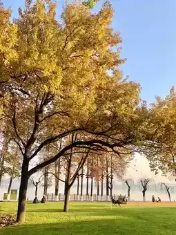 This section of the greenway is a bit away from the water, mainly passing through the forest park. Entering from the main gate of the park, you will see a golden ginkgo forest, usually around late October. There is also a forest study room with water cypress forests right outside the window, creating an amazing atmosphere!