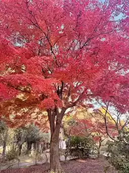 The maple trees in Moshan Bonsai Garden are like a gift of gratitude! A single tree is brilliantly red and eye-catching, surrounded by a few orange-yellow maples. Few people and beautiful scenery~ Other areas of Moshan also have colorful autumn foliage scattered around.