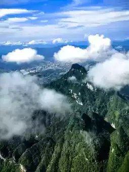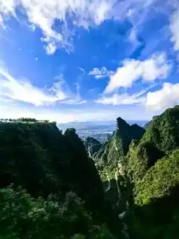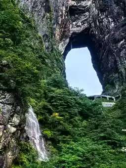 Tianmen Mountain is located in Yongding District, Zhangjiajie City, Hunan Province. It is the highest mountain in Zhangjiajie. The mountaintop is flat and covered with a complete secondary forest. The ancient trees are towering, the vines are entwined, and the moss is everywhere. The mountain combines peaks, rocks, springs, streams, clouds, and forests. It is majestic, unique, beautiful, dangerous, and secluded. It is known as the most beautiful sky garden in the world. On this day, I drove through Zhangjiajie City and saw a very majestic cave from afar. It was the Tianmen Cave, the gateway to Tianmen Mountain. It stood high in the clouds, like a wide-open door to a mysterious world. It seemed to be beckoning me, so I excitedly boarded the cable car and ascended Tianmen Mountain. I strolled along the thrilling Ghost Valley Plank Road and felt like I had stepped into a fairyland. The blue water flowed around the mountains, and the green trees reflected in the water. Occasionally, I heard the chirping of birds, adding a touch of vitality and vigor. I climbed 999 steps and reached Tianmen Cave. Standing at the entrance, I looked down at the mountains. The peaks were like islands, the scenery was magnificent, and the mountain scenery was unique, like a real-life fairyland painting. Oh, Tianmen Mountain! You are beautiful because of the scenery. Every emerald peak is a poem, every ray of cloud and shadow is a dream, making my heart flutter and my time in the mountains as beautiful as ever.