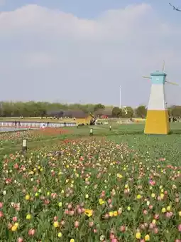 Windmills, lawns, cherry blossoms and tulips are so romantic.