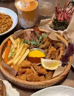 And did the owner go to Thailand? The new items all have a Thai vibe. The Guizhou peanut ice cream and Thai salty French cheese are both delicious. This time I didn't have tea, but a very summery fruit sparkling drink. Suddenly realized I haven't missed a single beautiful display in the tea room—I've checked them all off. That must be true love! [Tiptop][Tiptop]