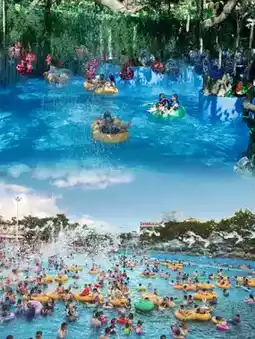 - **Top Attractions**: 📣 "Giant Tornado" (weightless screams!); 🌈 "Rainbow Slides" (6-lane high-speed drop); 🌊 "Hurricane Bay" (artificial waves + poolside EDM); 🔫 "Bubble Battle" (family splash fest).