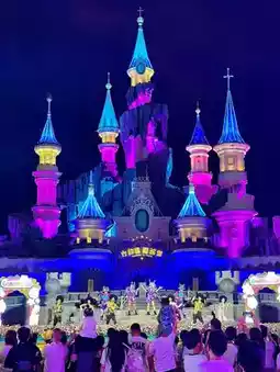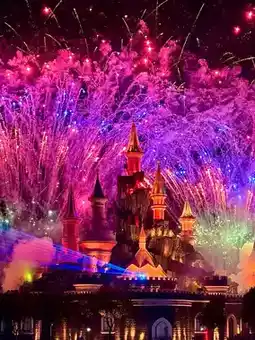 Right at the entrance, you can capture a full frontal view of the castle—its grandeur will definitely wow your social media. Take close-up shots with the castle from the Ferris wheel, or enjoy a bird’s-eye view for another stunning perspective. At dusk, shoot the castle by the lakeside with the warm golden glow reflecting off the pink castle—pure magic. At night, don’t miss the fireworks over the castle, a kaleidoscope of colors bursting in the sky—a must-see in your lifetime.