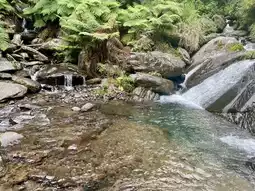At the beginning, the first 1.2 kilometers of Xikeng Forest Trail are spacious and obvious. After that, the road radius narrows to a single track. A total of four streams are crossed to the Ayu Valley (about 4.5K) where the two waterfalls meet. This is currently the best end point. The valley has a wide view and you can step on the water for a short time to enjoy the beauty of the natural mountain valley.