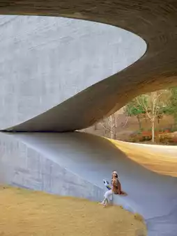 Designed by Zhang Ke, a winding and flowing boulder building was built between the mountains and rivers, with a great sense of design