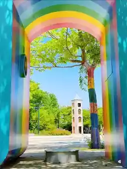 Train restaurant, swings, carousel, fountains... fully equipped with facilities, all in the art style of comic artist Jimmy. Both adults and kids love it—fun and great for photos
