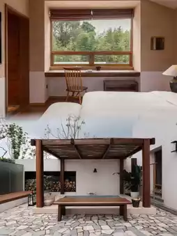 Breakfast features freshly made Wuning specialties like rice cakes and handmade rice noodles. For main meals, enjoy creative dishes prepared with seasonal ingredients like West Lake organic fish heads, Dongshan bamboo shoots, and farm-raised pork. The restaurant also has an outdoor BBQ area for DIY grilling.