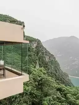 1️⃣Cliff-view floor window (robe-clad breakfast in the clouds)