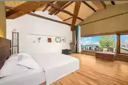 - Loft-style wooden structure rooms where you can enjoy the mountains and water while lying in bed
