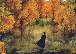 The entire forest burns like flowing molten gold in the slanting light.