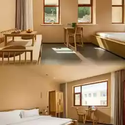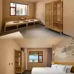 🌀The whole house of the homestay uses solid wood custom furniture, which combines classical Zen with modern elegance, and can show taste everywhere. Every decoration is carefully selected by the owner, cleverly borrowing the scenery, bringing the magnificent mountain scenery of Mount Wutai into the room, and contrasting with the wooden structure and the clear shadows of the bamboo, creating a quiet atmosphere that transcends the world💯💯💯