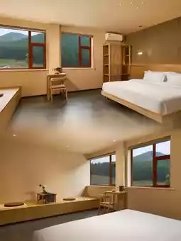 The entire homestay uses custom-made solid wood furniture, which combines classical Zen with modern elegance and shows good taste everywhere. Every ornament is carefully selected by the owner, who cleverly borrows the scenery to bring the magnificent scenery of Mount Wutai into the room, which contrasts with the wooden structure and the clear shadows of bamboo, creating a quiet atmosphere that transcends the world.