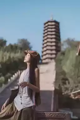• Light and Shadow on the Pagoda: At noon, the pagoda’s shadow casts geometric shapes on the ground. The subject stands at the edge of the shadow, wearing a dark blue Hanfu, holding a lotus lantern. Shoot upward with a wide-angle lens to create a composition where the pagoda and sky feel imposing. Darken saturation in post to evoke the philosophical mood of "Silent Illumination Non-Duality."